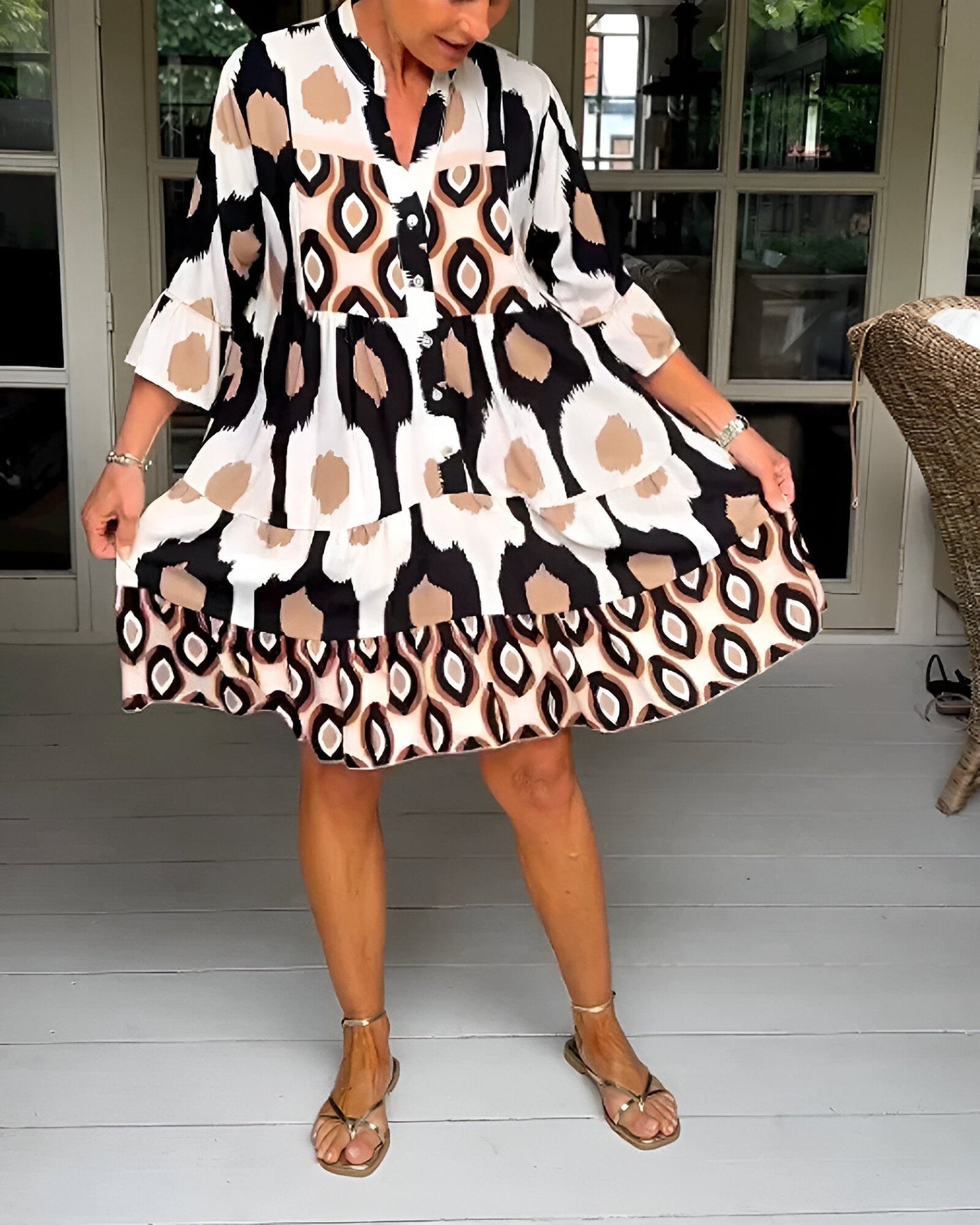 Infuse your daily wardrobe with creative flair in the Avenia - Bohemian Casual Dress. This charming knee-length piece reimagines classic bohemian style with a bold, contemporary print and a silhouette designed for ultimate comfort and freedom.